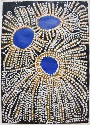 Muni was among the first Martu women to begin painting on canvas. A prolific artist, she often painted large collaborative works with her sisters. Her work has been exhibited widely across Australia, and acquired by the National Gallery of Victoria and the National Museum of Australia.