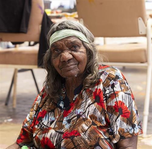 Len Beadell notified staff at Jigalong Mission of their whereabouts, and consequently they were tracked and persuaded to relocate to the mission. There they rejoined many relatives that had already moved in from the desert. After living for a time at the mission, Kumpaya worked on several pastoral stations throughout the Pilbara, washing clothes and making damper (a type of flat bread). In 1982, during the ‘Return to Country’ movement, she relocated with her family to Parnngurr Aboriginal community, where she continues to live today with her children and grandchildren.