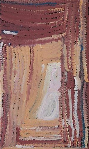 Nyanjilpayi is a Manyjilyjarra woman, born in the 1940s at Jarntinti, a large claypan at the southern end of Nyayartakujarra (Lake Dora) and within the Karlamilyi (Rudall River) region. She is the sister of fellow senior Martumili Artists Mulyatingki Marney, Mayiwalku Chapman and Marjorie Yates (dec.). As children, Nyanjilpayi and her family walked around the Punmu, Kunawarritji (Canning Stock Route Well 33) and Karlamilyi regions. A severe and prolonged drought extended through many years during this formative period in her life, and Nyanjilpayi remembers this as a difficult time. Although her family knew about the mission at Jigalong, where a supply of rationed food and water was assured, they chose to continue to live nomadically and independently for many years.
