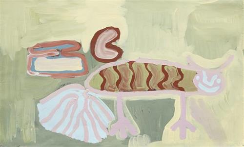 Most often explored in Doreen’s works are the motifs of her everyday modern Aboriginal community life; the animals hunted and plants gathered for bush tucker, the cars and aeroplanes used to travel to the cities and remote communities she regularly moves between, and depictions of the Country itself.