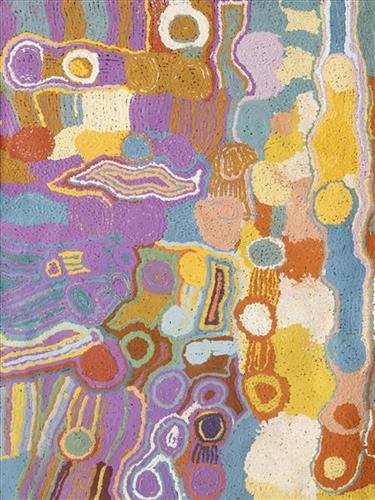 Ngamaru has painted with Martumili since its inception in 2006. She has frequently painted with senior artists and relatives Mitutu Mabel Wakarta (dec.) and Kumpaya Girgaba. Ngamaru is known for the beautifully complex compositional structures and intricate patterning in her work, through which she very often explores the practice of fire burning in her Country and the related Martu cyclical seasonal changes. Ngamaru’s work has been exhibited in galleries internationally and throughout Australia, and acquired by major institutions including the National Museum of Australia, the National Gallery of Victoria, and the Art Gallery of Western Australia. In 2019 Ngamaru was selected for the prestigious John Stringer Art Prize exhibition.