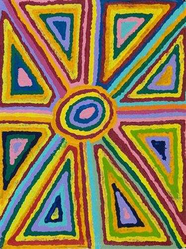 Jartuti is a water source located close to Parnngurr Aboriginal Community (otherwise known as Cotton Creek), and is part of Beverley’s father’s ngurra (home Country, camp). The site is near to the home of the jangara (cannibal devil), spiritual beings from the Jukurrpa (Dreaming) era.