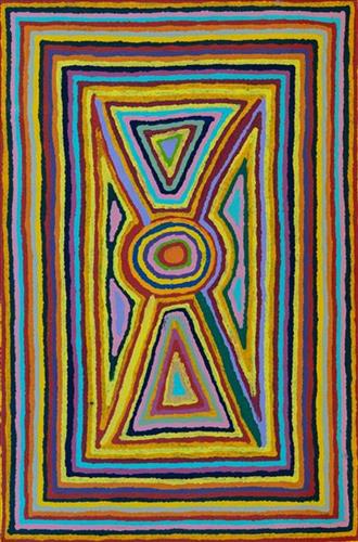 Jartuti is a water source located close to Parnngurr Aboriginal Community (otherwise known as Cotton Creek), and is part of Beverley’s father’s ngurra (home Country, camp). The site is near to the home of the jangara (cannibal devil), spiritual beings from the Jukurrpa (Dreaming) era.