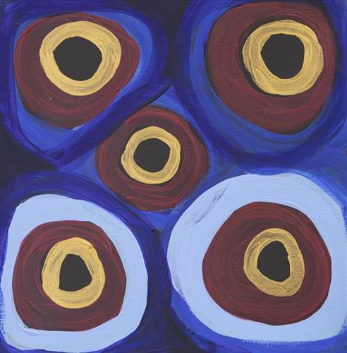 “I paint Pitu because my father come[s] from Pitu and all the rest of the family, they belong to there. Family hear the stories all the time from Jakayu [Biljabu]. It’s their connection to that place. All the old people were walking through that area, aunty Jakayu was born there. It’s a sad story, hers. We [went] there… to see it again. It’s a long, long way from Punmu. All the other family [saw] where their family is from and where they belong to.”