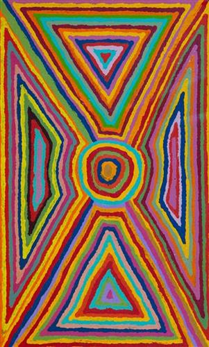 Jartuti is a water source located close to Parnngurr Aboriginal Community (otherwise known as Cotton Creek), and is part of Beverley’s father’s ngurra (home Country, camp). The site is near to the home of the jangara (cannibal devil), spiritual beings from the Jukurrpa (Dreaming) era.