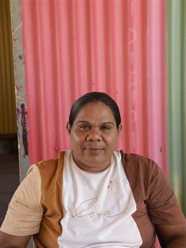"My name is Roxanne Newberry. I'm from Warakurna [Aboriginal Community]. I've been painting for a few years now.  I was watching my sister, Cynthia Burke, and my mother, Jorna Newberry, paint. I'd sometimes help them with their painting.  It gave me some ideas for my painting. I love doing aerial landscapes of my father's Country. I was watching Cynthia weave at Tjanpi Desert Weavers, then I decided to do my own. When I'm painting or weaving I forget about everything and everyone, forget about my worries. It makes me feel like me."
