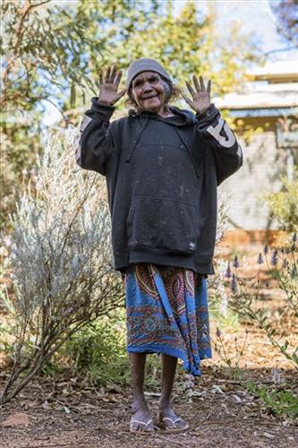 Pimurlu is a rockhole and important women’s site located between Parnngurr Aboriginal community and Karlamilyi River (Rudall River). This site lies within Jatarr’s ngurra (home Country, camp), the area which she knew intimately and travelled extensively with her family in her youth. During the pujiman (traditional, desert dwelling) Pimurlu was an important Warnman campsite. Surrounding Pimurlu rockhole is a hilly, rocky area featuring circular walka (sacred designs) left by the Minyipuru in the Jukurrpa (Dreaming). These same designs are painted on women’s bodies and faces for important ceremonial dancing today.