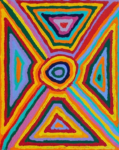 Jartuti is a water source located close to Parnngurr Aboriginal Community (otherwise known as Cotton Creek), and is part of Beverley’s father’s ngurra (home Country, camp). The site is near to the home of the jangara (cannibal devil), spiritual beings from the Jukurrpa (Dreaming) era.