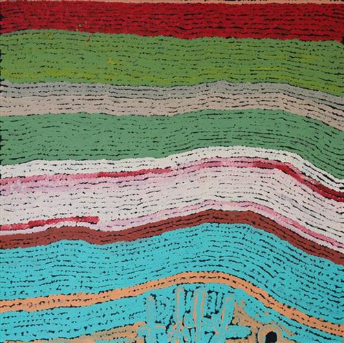Jarntinti is a large claypan at the Southern end of Nyayartakujarra (Lake Dora), a large salt lake surrounded by tali (sand hills) within the Karlamilyi (Rudall River) region. This area forms part of Mayiwalku’s ngurra (home Country, camp), the region which she traversed extensively as a young girl. Mayiwalku’s sister Nyanjilpayi was born at Jarntinti.