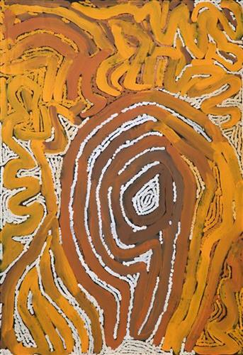 Jarntinti is a large claypan at the Southern end of Nyayartakujarra (Lake Dora), a large salt lake surrounded by tali (sand hills) within the Karlamilyi (Rudall River) region. This area forms part of Mayiwalku’s ngurra (home Country, camp), the region which she traversed extensively as a young girl. Mayiwalku’s sister Nyanjilpayi was born at Jarntinti.