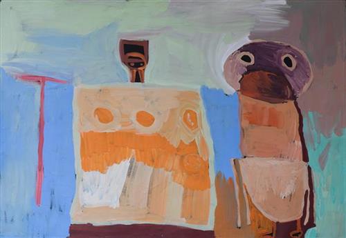 Most often explored in Doreen’s works are the motifs of her everyday modern Aboriginal community life; the animals hunted and plants gathered for bush tucker, the cars and aeroplanes used to travel to the cities and remote communities she regularly moves between, and depictions of the Country itself.