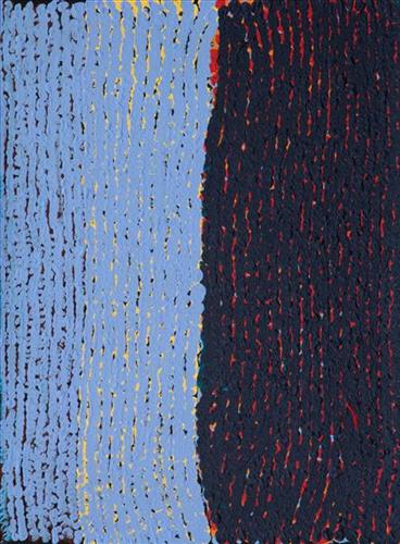 Jarntinti is a large claypan at the Southern end of Nyayartakujarra (Lake Dora), a large salt lake surrounded by tali (sand hills) within the Karlamilyi (Rudall River) region. This area forms part of Mayiwalku’s ngurra (home Country, camp), the region which she traversed extensively as a young girl. Mayiwalku’s sister Nyanjilpayi was born at Jarntinti.