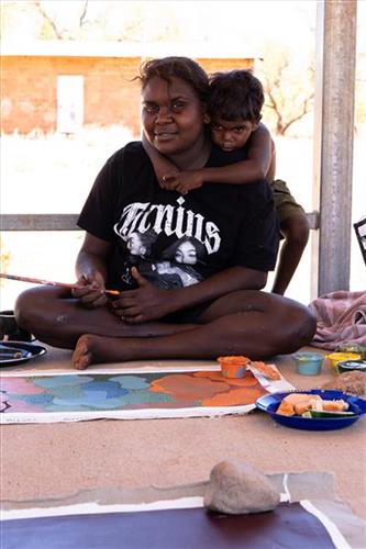 “When Martu paint, it’s like a map. Martu draw story on the ground and on the canvas, and all the circle and line there are the hunting areas and different waters and tracks where people used to walk, and [some you] can’t cross, like boundaries. So nowadays you see a colourful painting and wonder what it is, but that’s how Martu tell story long ago. It’s not just a lovely painting, it’s a story and a songline and a history and everything that goes with it.”