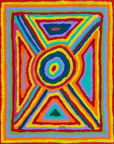 Jartuti is a water source located close to Parnngurr Aboriginal Community (otherwise known as Cotton Creek), and is part of Beverley’s father’s ngurra (home Country, camp). The site is near to the home of the jangara (cannibal devil), spiritual beings from the Jukurrpa (Dreaming) era.