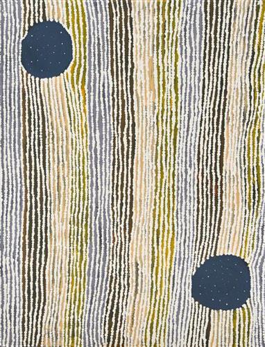 I paint about my Country, all around Punmu, and my mum’s Country. Mulyatingki told me about how to do [paint] her country, Nyinyiri Country, where she born. I never been there, I have to go there one day. Mum told me in the Martu way, how she talk, she told me to do all the warla (lake, claypan), sandhills and waterholes. She told me do that. I get an idea from mum, she tell me and I think and I paint it. I see her painting, what she do, and when I come back home I think in my mind how she do. I’m proud of her and I’m proud of painting where I grew up.