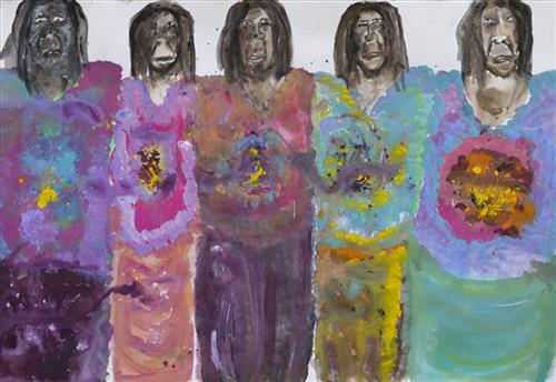 Wanti Yuu (Woman Yeah!) is a story of resilience and of women coming together. It is about the strength of the women in our community who put themselves last and take on a lot. She [Wanti Yuu] is someone who looks after her family, putting the grand kids and everyone around her first. The word Matriarch comes to mind. They are the matriarch of the family. The Boss Lady. Always helping everyone else out and leaving herself to the end. She paints, she teaches us her knowledge, like basket weaving and honey ant collecting. She is the top lore woman and her story of Pujiman (traditional, desert dwelling) is so important. She is a leader of the Martu women and a senior artist. That’s all I can say about these women. These women; you give her the bread if you know what I mean. It’s a true story. Anything in my pockets. Because when you look at her, her stance, her energy and her vibe, you can feel it. You don’t muck around with Wanti Yuu.”