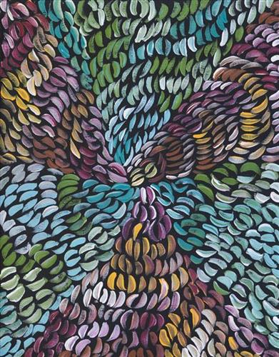 I moved to Newman last year, I also like to paint in the gallery in Wiluna. Sometimes I paint my grandfather's land, where the old people walk around. I like to paint bush medicine too."