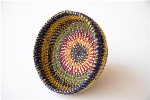Each basket is built up through wrapping fine bundles of grass in brightly coloured wool and then stitching each round on to the previous one. The baskets are primarily made from puntayarra and minarri (Amphipogon Caricinus) grass, usually collected incidentally during trips to visit family, attend ceremonies, maintain Country, and hunt and gather bush tucker. Martu artists have developed a distinctive style of basketry and individual artists continue to develop new designs and incorporate novel materials, including steel, wire and wood, into their work.