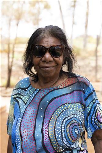 This work portrays an area known to the artist, painted here from memory. During the pujiman (traditional, desert dwelling) era one’s survival depended on their intimate knowledge of the location of resources; thus physical elements of Country, such as sources of kapi (water), tali (sandhills), and different varieties of warta (trees, vegetation) were carefully observed and remembered. Today, this relationship with Country remains equally strong, despite the movement of Martu out of the desert and into remote Aboriginal communities, towns and cities.