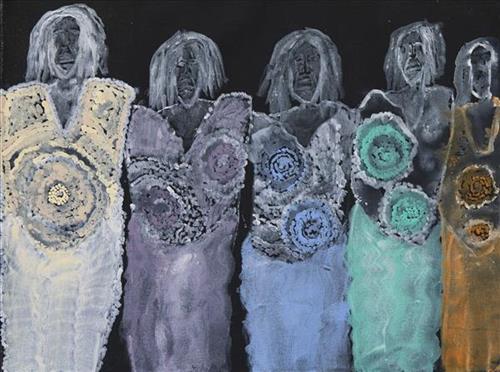 As Sylvia explains, the work is both a depiction of, and attribute to, the women in her life. “I follow my great grandmother’s guidance and direction in life. These women in my life carry so much on their shoulders, as well as the responsibility and future of our culture.”