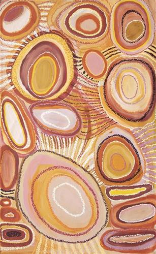 I'm [also] a Martumili artist. I come to Martumili to paint about my Country, where my grandfather walked around and collected food, and visited the same rockholes I do. I paint to keep my culture and stories and share with others. Sometimes I paint with my nanna Jakayu [Biljabu] (dec.). I learn from her a little bit. My skin name is Milangka, and Kaalpa (Kalypa, Canning Stock Route Well 23) is my grandfather’s Country. I was really happy to go see my grandfather's Country- pukurlpa (happy). When I paint I feel like its home. Doing it on the canvas, I feel like I'm standing there back at home."