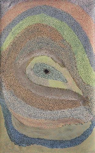 I like to paint around Punmu rockholes, springs.  In the morning, sunset colours, that’s what I’m thinking about. In the plane looking down, I want to do a painting what I’m looking at, it looks nice. I want to do more painting like that. I like painting, it makes me feel good.