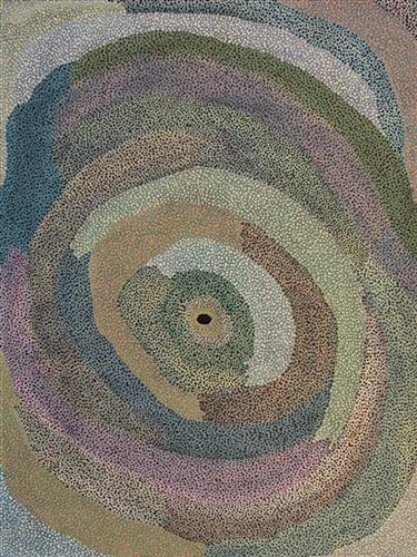 I’ve been in Jigalong with my father, learning to paint. I was watching him paint. I stayed with them all day, sometimes I help[ed] him and he told stories. Doing the dot paint, that’s when I learn[ed] on a little canvas.”