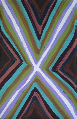 Today, Anya is recognized as a leading figure among the younger generation of Martumili Artists. She is celebrated for her vibrant and unrestrained colour palettes, bold, expressive style, and the use of geometric walka (iconographic forms that depict people, animals, tracks, geographic formations, and water sources). Her paintings often portray the Country of her ancestors, including Puntawarri, Jigalong, and the Rabbit Proof Fence.