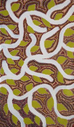 Traditional Martu knowledge of plant properties was encyclopedic, and saw plants used for purposes as diverse as food resources, carving implements, tobacco, firewood, shelter construction, and bush medicines. Depicted in this work are types of bush medicines, their habitats, and the processes used in their preparation.