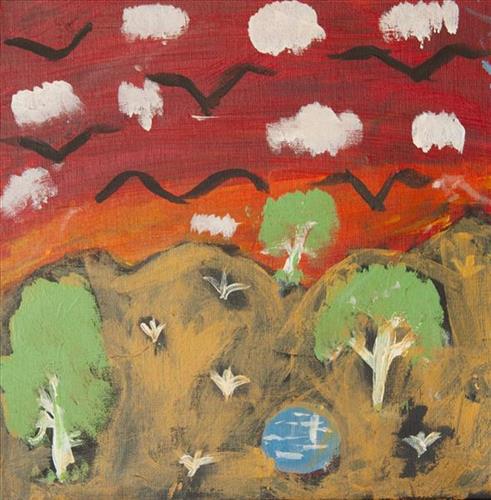 I live in Jigalong and go to school in Jigalong. I like to play and paint. I been do a painting at Jigalong in the class. I do painting at school and I go to school every day.