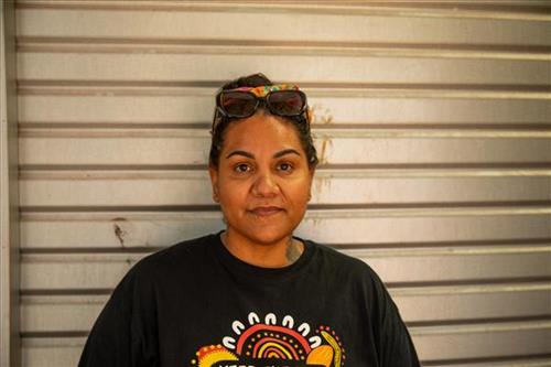 Marissa Riley is a Nharnu Wajarri woman who grew up in Yulga Jinna Community. She is an artist and advocate for her community. Marissa attended remote schooling (School of the Air) as well as schooling in the regional town of Meekatharra. Currently she is living in Newman. Marissa recalls learning to paint with her aunty and nana when she was 10 years old. She paints about her country, dreaming stories, animals, and community life.