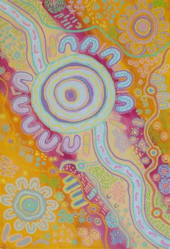 Marissa Riley is a Nharnu Wajarri woman who grew up in Yulga Jinna Community. She is an artist and advocate for her community. Marissa attended remote schooling (School of the Air) as well as schooling in the regional town of Meekatharra. Currently she is living in Newman. Marissa recalls learning to paint with her aunty and nana when she was 10 years old. She paints about her country, dreaming stories, animals, and community life.