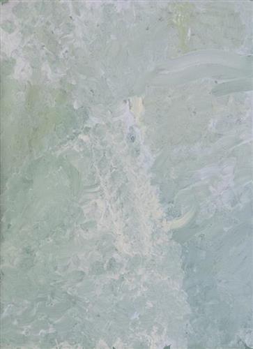 Wantili, which forms the focus of much of Bugai’s work, is a large round jurnu (soak) and linyji (claypan) near Well 25 on the Canning Stock Route. The Wantili region is dominated by claypans surrounded by tuwa (sandhills), and Nyilangkurr, a prominent yapu (hill) is located close to the eastern edge of the claypan. Following rain the typically dry claypans are filled with water, with the overflow from nearby waterholes flowing to Wantili. At that time, Wantili becomes an important place for obtaining fresh water for drinking and bathing. Wantili is significant for the fact that at this site Kartujarra, Manyjilyjarra, Putijarra and Warnman people would all come together for ceremonies during the pujiman (traditional, desert dwelling) era. Many jiwa (stones used by women for grinding seeds) from these times can still be found there today.