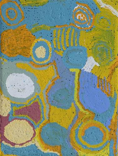 Ngamaru has painted with Martumili since its inception in 2006. She has frequently painted with senior artists and relatives Mitutu Mabel Wakarta (dec.) and Kumpaya Girgaba. Ngamaru is known for the beautifully complex compositional structures and intricate patterning in her work, through which she very often explores the practice of fire burning in her Country and the related Martu cyclical seasonal changes. Ngamaru’s work has been exhibited in galleries internationally and throughout Australia, and acquired by major institutions including the National Museum of Australia, the National Gallery of Victoria, and the Art Gallery of Western Australia. In 2019 Ngamaru was selected for the prestigious John Stringer Art Prize exhibition.