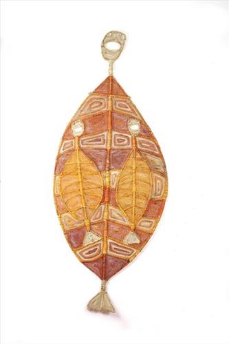 This is a painting of Ngalkunburriyaymi, the fish-women spirit. The water spirits Yawkyawk or Ngalkunburriyaymi are perhaps the most enigmatic. Sometimes compared to the European notion of mermaids, they exist as spiritual beings living in freshwater streams, particularly those in the stone country. The spirit Yawkyawk are usually describe and depicted with the tails of fish, as in this painting. Thus the Kununjku people sometime call them ngalberddjenj which literally means ‘the woman who has a tail like a fish’. They have long hair which is associated with trailing blooms of green algae (called man-bak in Kuninjku) found in freshwater streams and rock pools. At times they leave their aquatic homes to walk about on dry land, particularly at night.