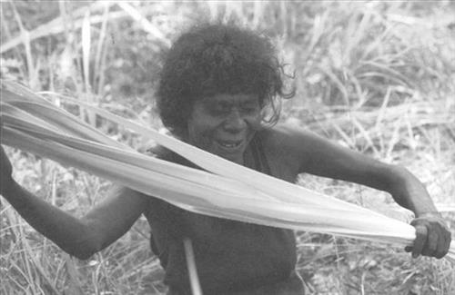 This is a depiction of Ngalkunburriyaymi or Yawkyawk, the fish-women spirit. Sometimes compared to the European notion of mermaids, they exist as spiritual beings living in freshwater streams, particularly those in the stone country. These water spirits are perhaps the most enigmatic, and are usually described and depicted with the tails of fish. Thus the Kuninjku people sometime call them ngalberddjenj which literally means ‘the woman who has a tail like a fish’. They have long hair which is associated with trailing blooms of green algae (man-bak in Kuninjku) found in freshwater streams and rock pools. At times they leave their aquatic homes to walk about on dry land, particularly at night.