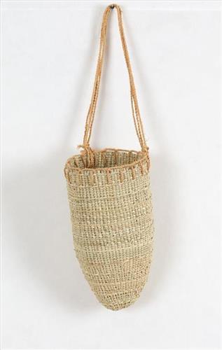 Burlupurr, or dilly bag, is a large woven collecting basket. These large bags are often made from the vine ‘Malasia scandens’, a strong pliable plant which grows along the floor and into the canopy of monsoon vine thickets. The bags are used to collect any kind of large numbers of heavy foods such as fish caught in conical fish traps or large collections of yams.