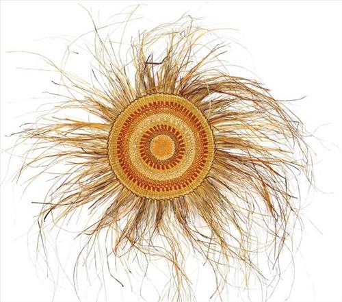 Mats can vary greatly. Artists commonly use a mix of naturally dyed and undyed fibre to create a striking variation of coloured bands. Some artists also incorporate different types of looping to produce different patterns and textured finishes. Each type of mat, fibre bag, basket and dilly bag has its own name in the various languages spoken in the Maningrida region.