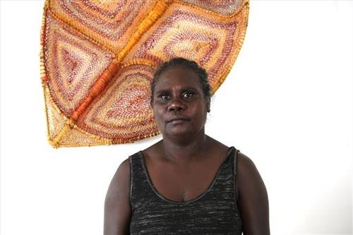 She was taught to weave by her aunts, senior and expert weavers Anniebell Marrngamarrnga and Dorothy Bunibuni . She has been given permission to weave Nawarlah (Brown River Stingray) and Yawkyawk which she weaves in pattern of bright and bold natural colour patterns.
