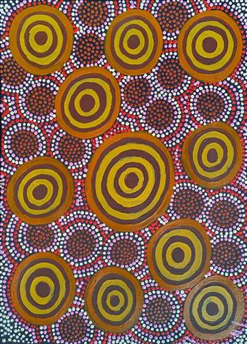 Yayimpi grew up in Amata with her two sisters and two brothers. Her mother, Wanatjura (deceased) became a well-known artist late in her life painting at Tjala Arts in Amata. Yayimpi started painting before her mother in the late 1990's when Tjala Arts was called Minymaku Arts.