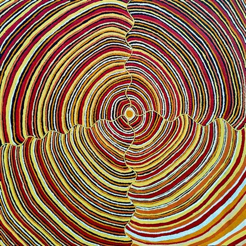 The circles in the painting represent Kapi Tjukurla. The lines connecting the circles are the creeks, streams or paths the water takes when it rains.