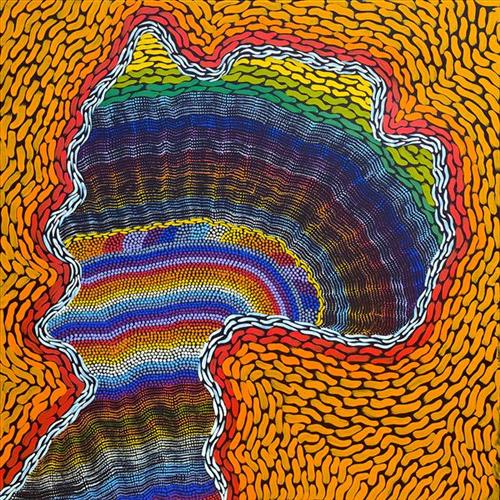 ‘Kungkarrangkalpa’ (The Seven Sisters or Pleaides) is significant Tjukurrpa (dreamtime). Its origins you may be familiar with in astronomy and its connection to ‘Wati Nyiru’ (Magic Man or Orion). The roots of this dreaming stems across indigenous groups around the world. The Australian Aboriginal songline is one part to the whole dreaming which can be traced all around the world. The ladies of the Ngaanyatjarra Lands depict their significant chapter and understanding of the journey of the sisters. The different versions of this story depend on where you live and the significance’s of local Tjukurrpa places.