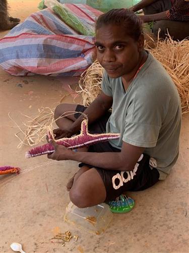 It’s a place between Wingellina highway and Warakurna road. A big story for that place. Kanala’s (Rock Wallaby) Auntie was sitting down she heard a barking and noise. Those dogs were chasing that Kanala. Auntie started digging, digging and made a hole. Kanala he was getting nearer, the dogs still chasing. Then he see that hole Auntie dug and jumped in to hide from those dogs. Dogs were too close and they all jump in as well. The Auntie she lay across and blocked it so they can’t get out. So when you go now there is a narrow hole in the middle, where Auntie blocked Kanala and those dogs. If you skinny one you can go through, with a torch, to get water from inside, because they all turned to water snake.