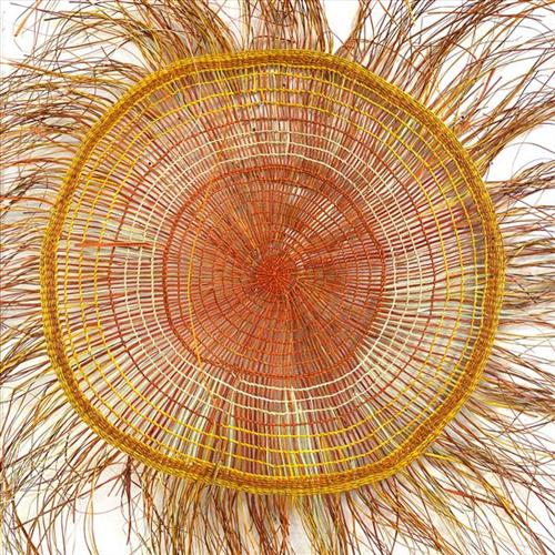 Traditionally, Nganiyal (conical mats) functioned as insect screens when erected and as seating mats when folded, playing an important role in both daily life and ceremonial practices. Today, Yolŋu artists create a variety of shapes, including flat, round, and oblong mats. These non-traditional styles and the use of bright colours became more common after Missionaries began commissioning pieces in this style.