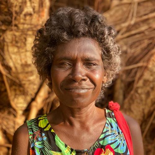 I first learned how to do gunga djama (fibre art) in Ramingining where I grew up. I am now staying in Gapuwiyak. I like working with Gunga (Pandanus) I like to make Bathi (baskets) and Gay'wu (String bags) and also make animals like turtle. Turtle is from my Mari (grandfather) clan the Djambarrpuyngu.