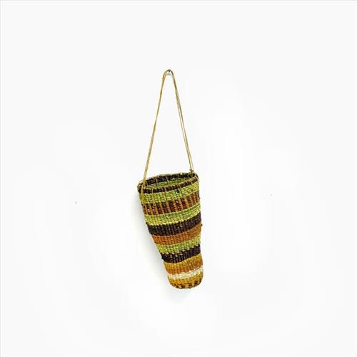 Miṉḏirr (dilly bags) are made from gunga (Pandanus spiralis), baḻgurr (kurrajong) and natural bush dyes. The body of the miṉḏirr is made from gunga, and the handles from baḻgurr. Once the gunga fronds and baḻgurr bark have been collected, they are stripped and prepared then boiled with the dyes.