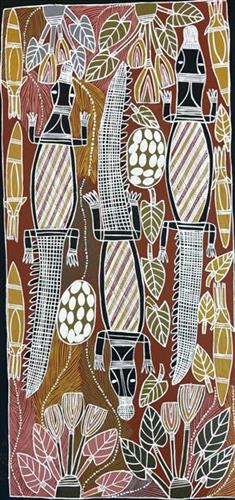 Burruna's late mother was a renowned artist who was one of the first Yolngu women to ever paint. She paved the way for Yolngu women to not be seen as only weavers but painters too. Burruna learnt to paint by watching her mother and she now paints along side her sisters, daughters and granddaughters with a family lineage of strong women painters.