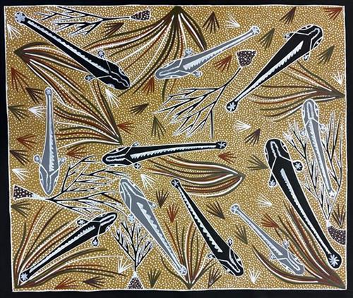 Aboriginal art in Ramingining, Central Arnhem Land is commonly illustrated through designs and images of animals, plants, and landscape. These motifs commonly reflect the artists ancestral inheritance and their dreamings and are referred to as totems.