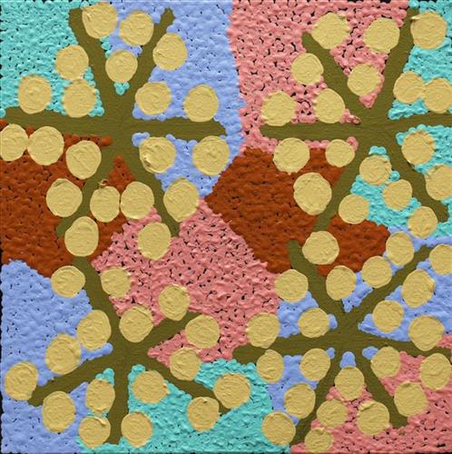 Isobelle paints in the classic Warlpiri style, and before joining Tangentyere Artists, sold most of her works through Jukurrpa artists’ co-operative.