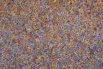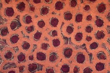 When you take the time to go off the main road and through the bush tracks you see the most beautiful wildflowers and waterholes in my country. You can see the tracks and the pink and purple Mulla Mulla, the Bluebells, the land and the Spinifex around the waterholes in this painting.